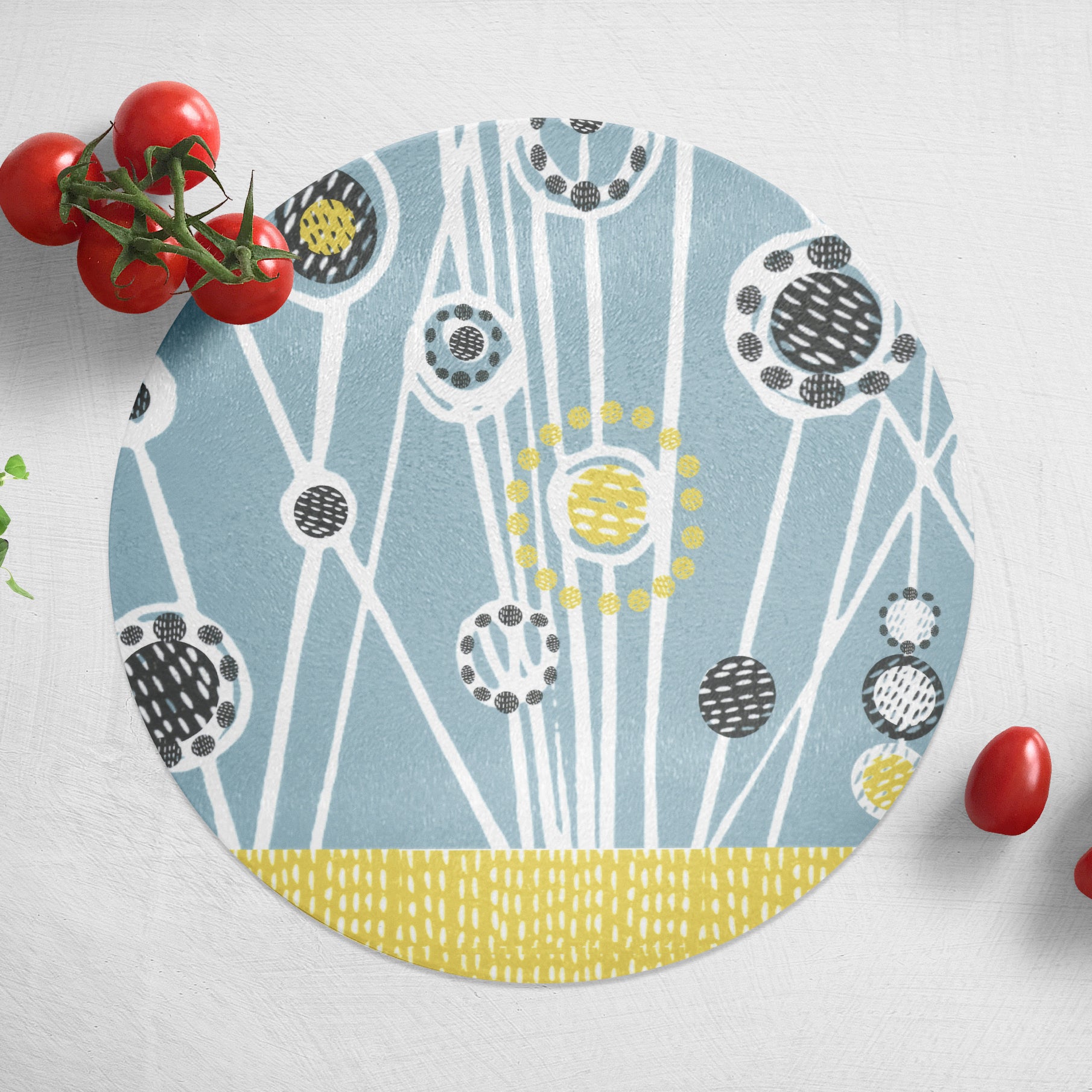 A round glass pot stand, ideal for protecting worktops and tabletops from hot pans or dishes, as well as for chopping, preparing and serving food.