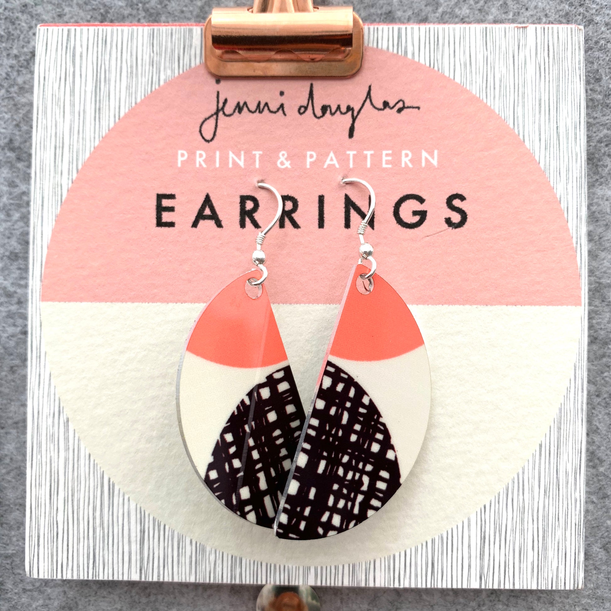Easy to wear, statement earrings made from lightweight and hypo-allergenic aluminium. Featuring sections of hand printed and drawn designs.