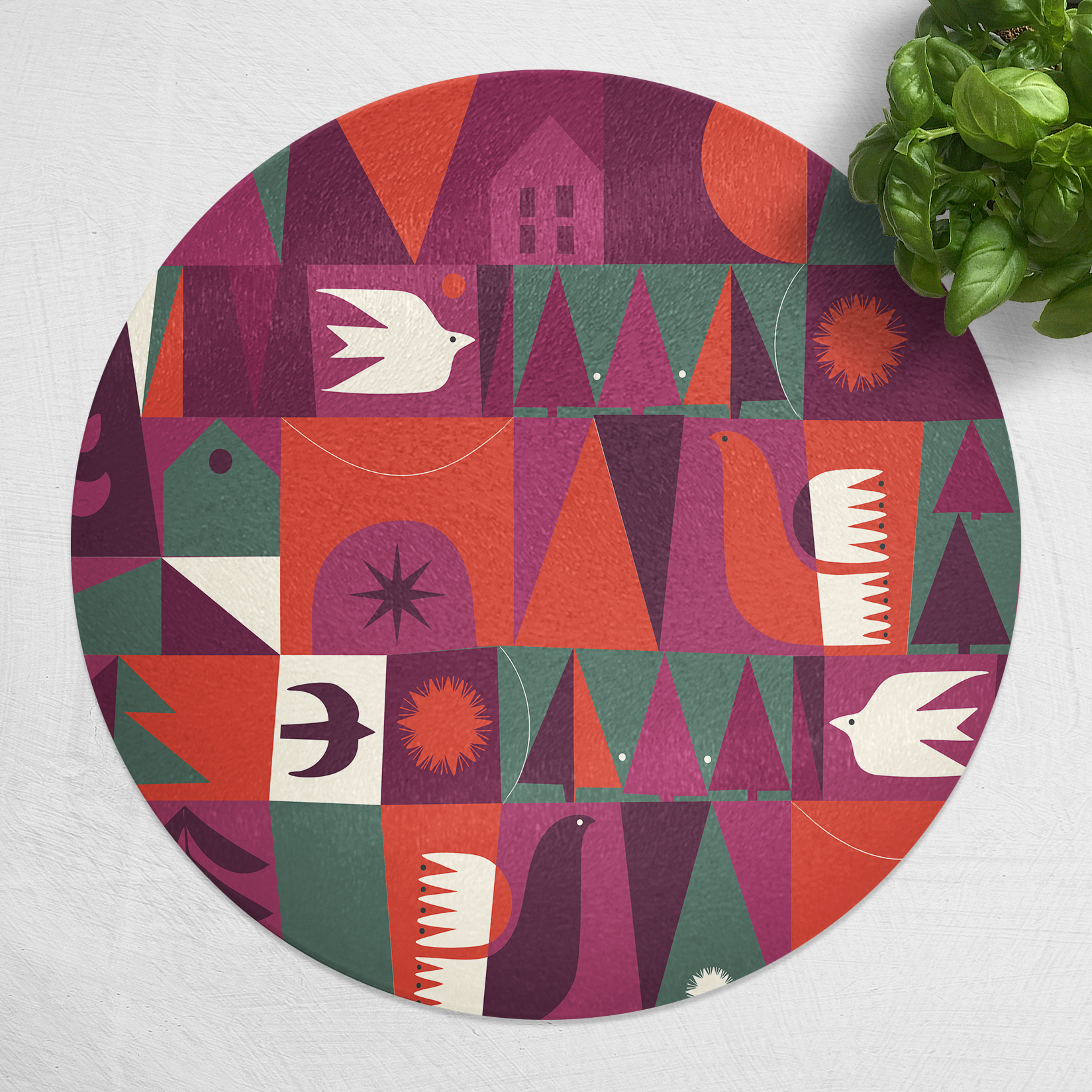 A round glass pot stand, ideal for protecting worktops and tabletops from hot pans or dishes, as well as for chopping, preparing and serving food.